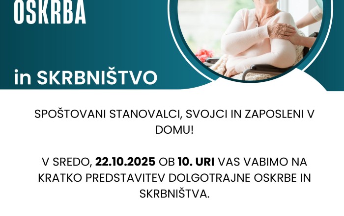 V sredo, 22.10.2025, ob 10:00 vas vabimo na predstavitev dolgotrajne oskrbe in skrbništva.